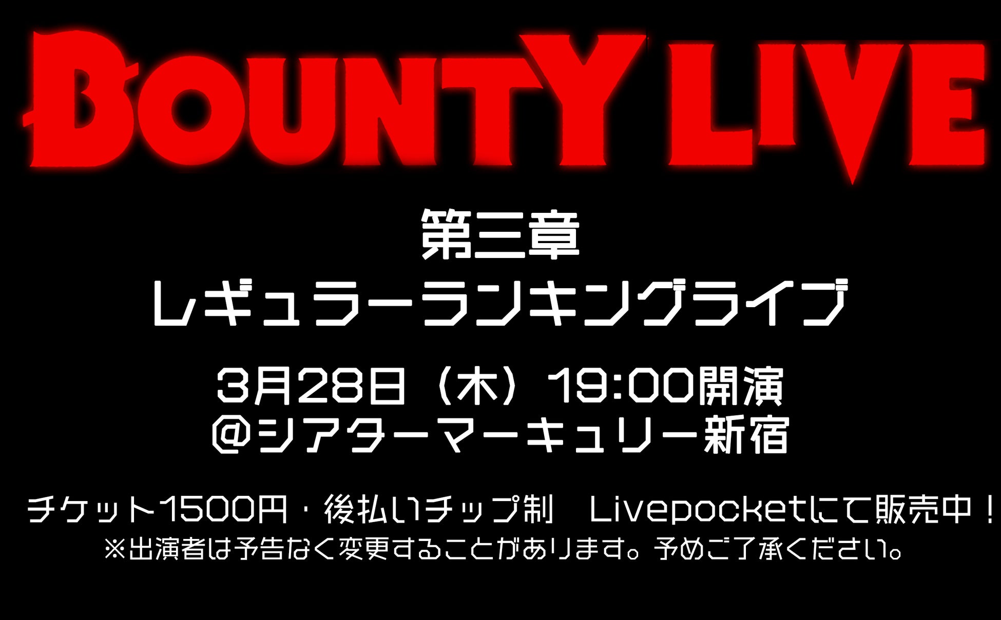 2024年3月開催「BOUNTY LIVE」ランキングライブ情報