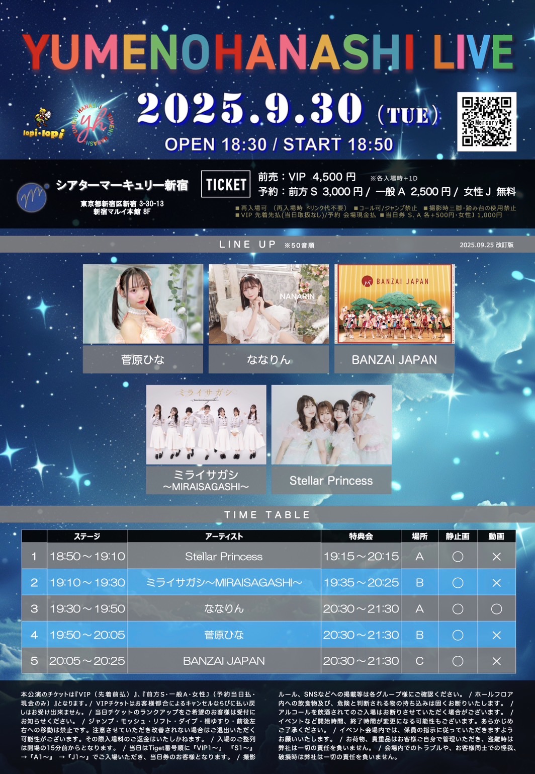 9月30日(火) 開場18:30/開演18:50/終演20:25