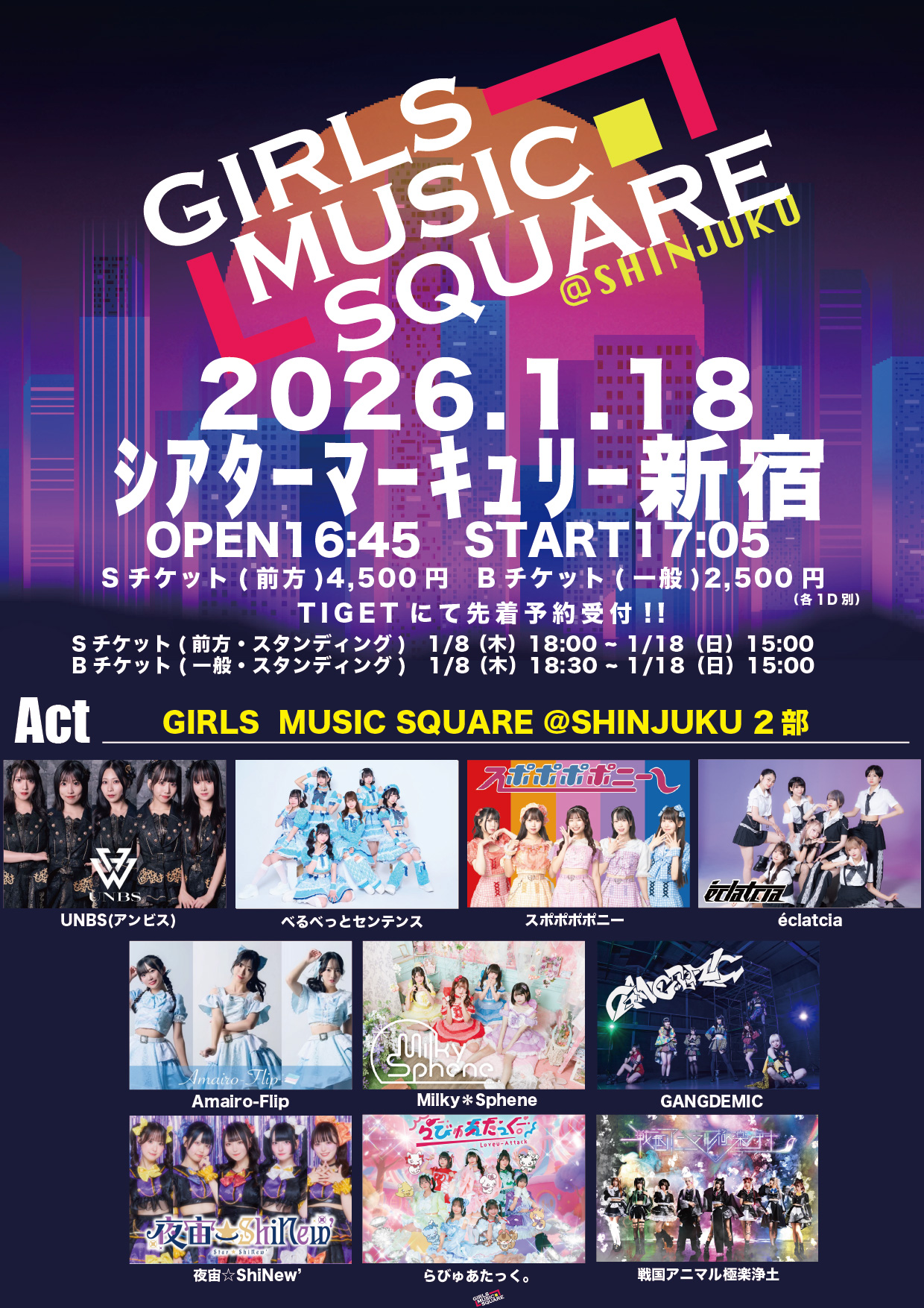 Milky*Sphene / スポポポポニー / UNBS(アンビス) / GANGDEMIC / 戦国アニマル極楽浄土 / éclatcia / 夜宙☆ShiNew’ / Amairo-Flip / べるべっとセンテンス / らびゅあたっく。